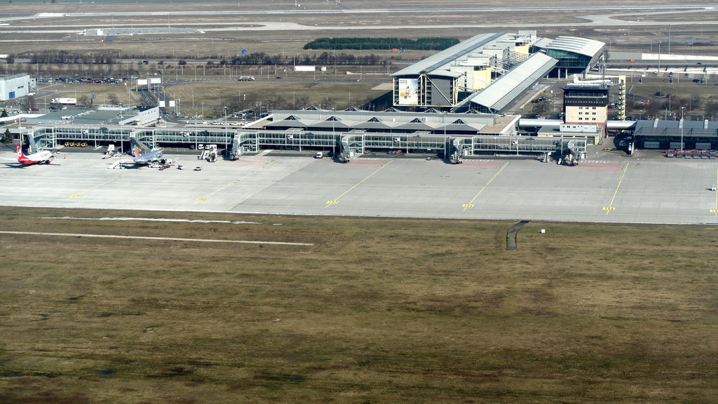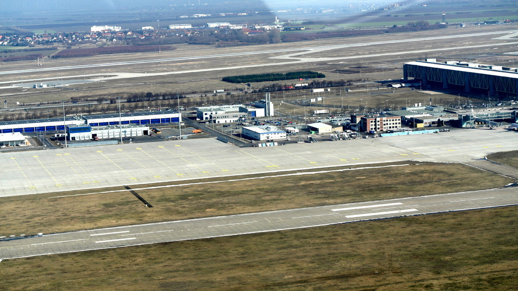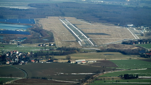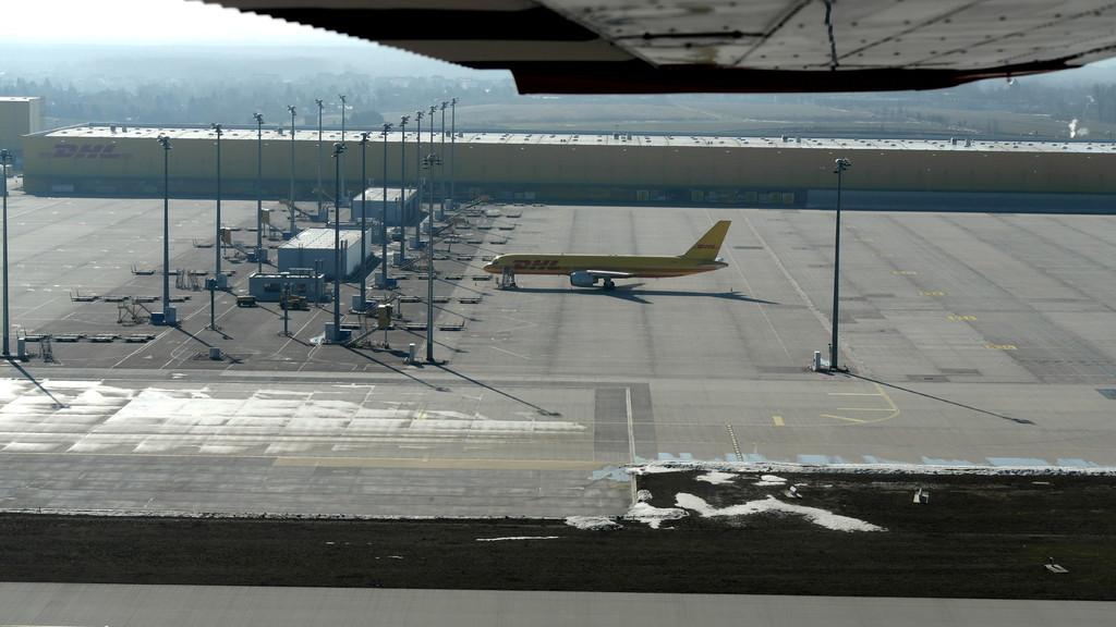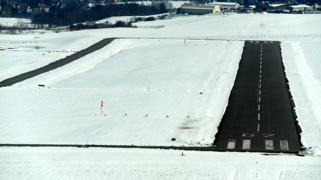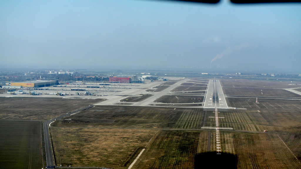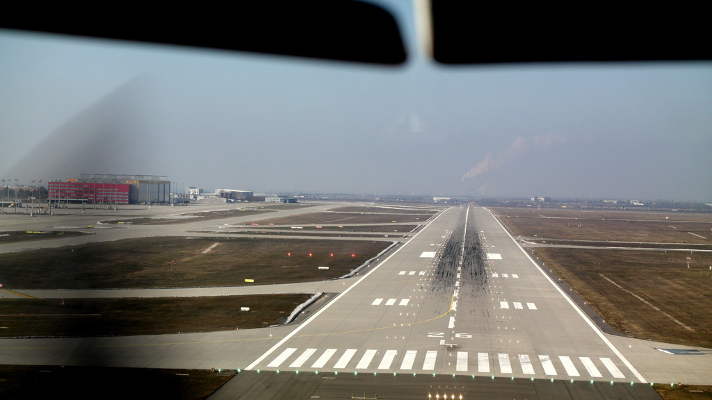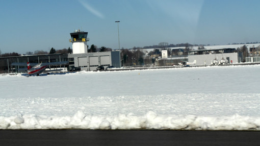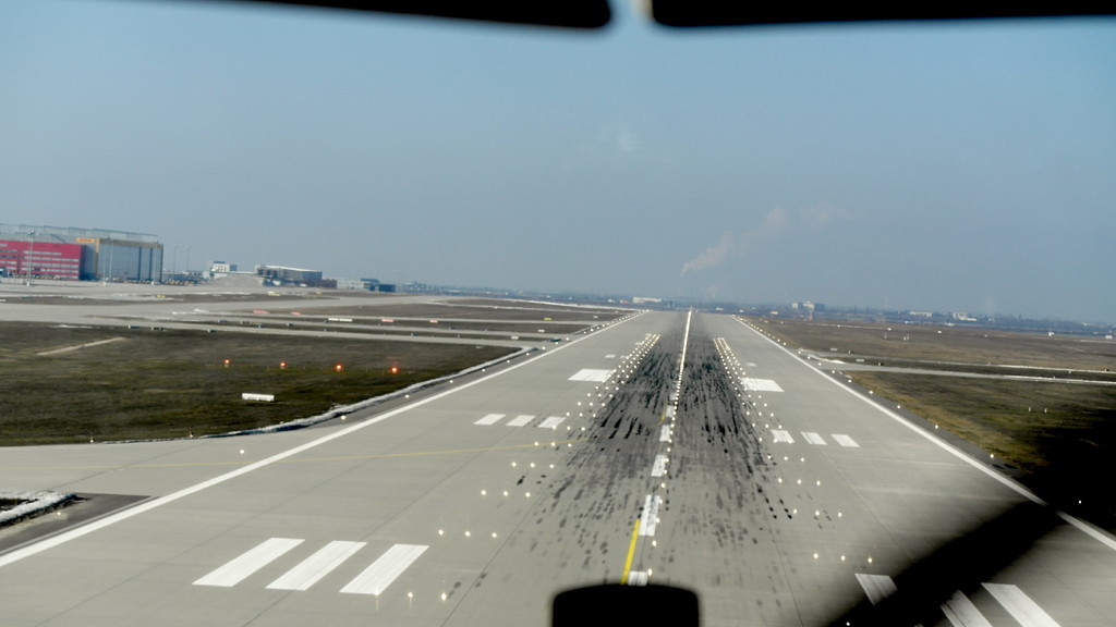 Nach Anfrage an Tower Leipzig zum tiefen Überflug haben wir die Südbahn "26" zugewiesen bekommen. Das heisst also, kurz vor dem Aufsetzen in etwa 5m Höhe wird Vollgas gegeben und die Bahn wird überflogen. Dabei sind auch keine Landegebüren fällig, solange die Räder nicht den Boden berühren. Am anderen Ende der Bahn wird zum Steigflug übergegangen.