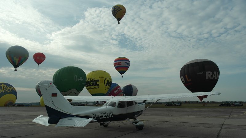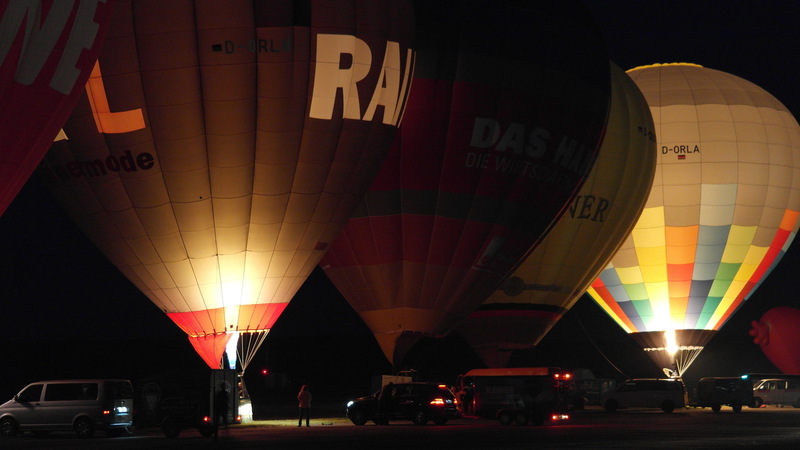 Tausende Schaulustige kamen am Sonnabend Nachmittag und in den Abendstunden zum Terminal Altenburg-Nobitz. Parkplätze waren schon am Nachmittag restlos überfüllt und an den Straßenrändern parkten die Autos. Die Stimmung war gut. Auch das Programm hatte einiges zu bieten. Wer Glück hatte konnte eine Ballonfahrt buchen. Vier Cessna und ein Hubschrauber flogen flugbegeisterte Zuschauer bis in die Dunkelheit. Wer hat das schon mal erlebt, mit einer viersitzigen Cessna in der Dunkelheit zu fliegen und auf das Lichtermeer von Altenburg zu schauen. 12 Heißluftballone auf dem Vorfeld begeisterten die Zuschauer durch ihr Ballonglühen, leider ohne Musik.